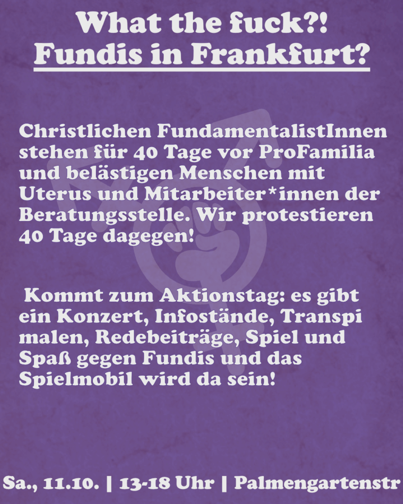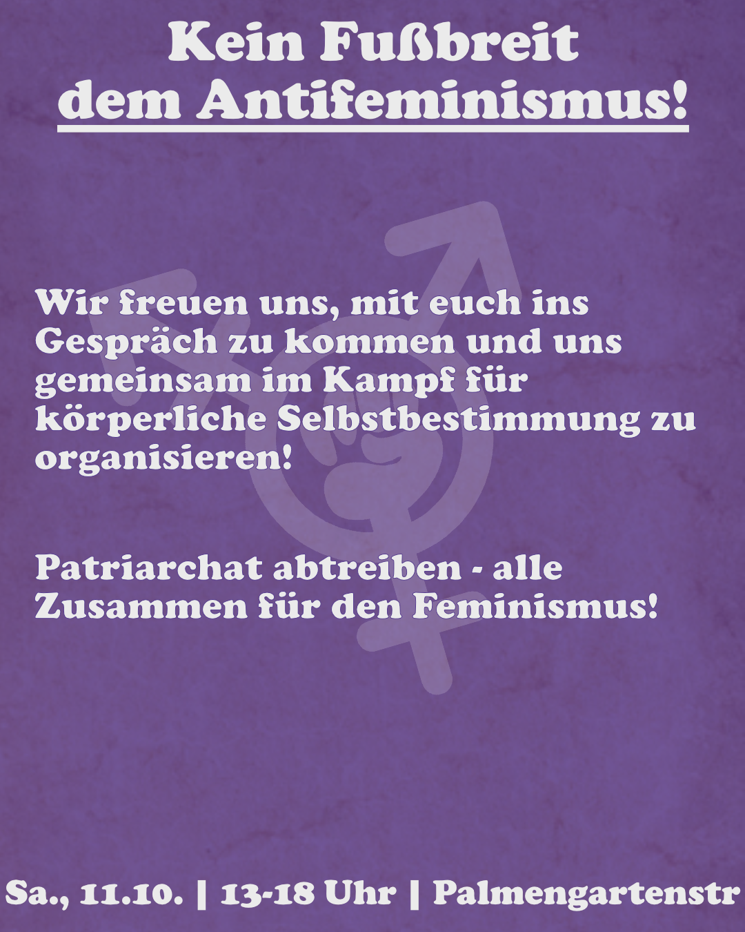 Straßenfest gegen AbtreibungsgegnerInnen am 11.10. Veröffentlicht vonoatfrankfurt 08/10/202508/10/2025